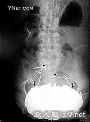 2002年,法国一名62岁的老者因胃痛难忍,不能下咽任何食物,来到法国西部的让丽特总医院急救室,当医生发现这名患者的病因后大吃一惊。在这名患者的胃里竟然发现了350枚硬币!合计650美元,同时还发现有项链和钢针等。患者家人告诉医生,老人原患有精神病,有时他吃硬币,以前也曾到过医院,从胃里取出过一些硬币。