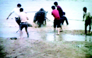 6月5日清晨,浐河半坡湖度假村附近的村民突然发现河中央有一头大黄牛,到了上午11时左右,村民有勇敢者下河赶牛,他先是大声吆喝,试图将牛赶到河边,但黄牛似乎并不买他的账,他上前驱赶,黄牛却冷不丁给了个“牛角顶”,村民无奈而退。随后,河东的村民也下来了几位壮汉,拿着绳索,各占方位,排成阵势,企图将黄牛一举擒获,但黄牛却野性发作,东突西窜,无人敢近身,正在此时,屠宰场的员工寻来,也下到河中,将绳索挽成“套马锁”状,将黄牛套住,然后众人一起上手,前拉后推……下午2点半左右,总算大功告成。