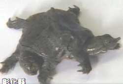 中新网6月7日电 台湾彰化县有一位刑警饲养的宠物鳖,最近生了一只怪鳖,这只鳖不但有2个头,还有6只脚,由于各自拥有独立的大脑,常导致行动不协调在原地打转,模样滑稽可爱。